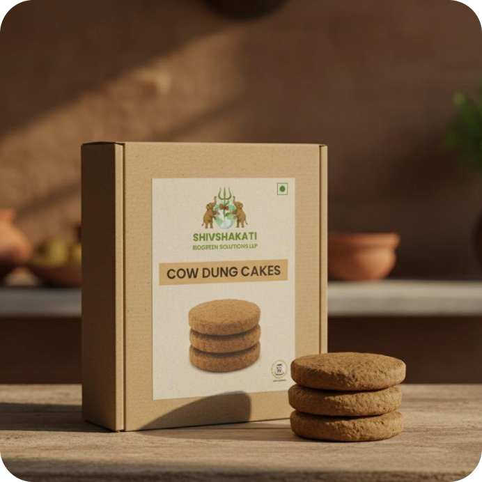 Traditionally hand-molded cow dung cakes made from sun-dried, pure desi cow dung. Ideal for Havan, Pooja rituals, and as a natural fuel.