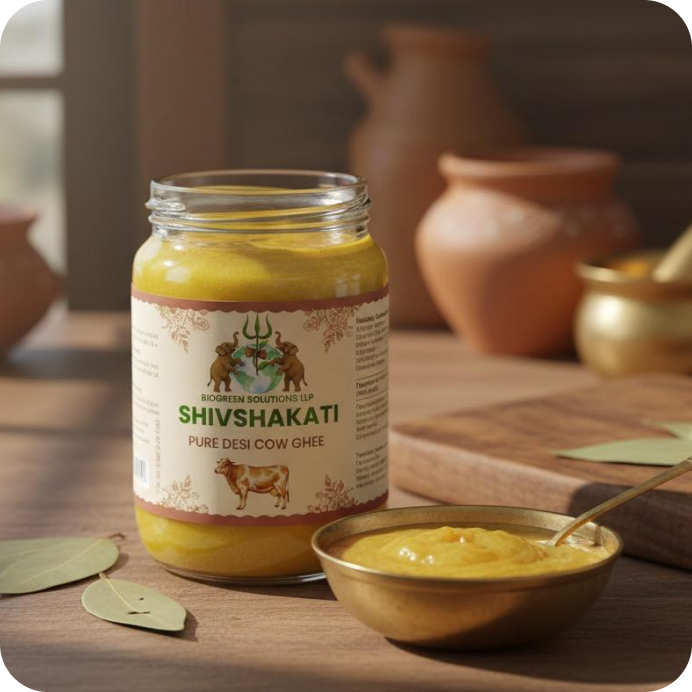 Traditional clarified butter made from cow’s milk, known for its rich flavor, nutrition, and Ayurvedic benefits.